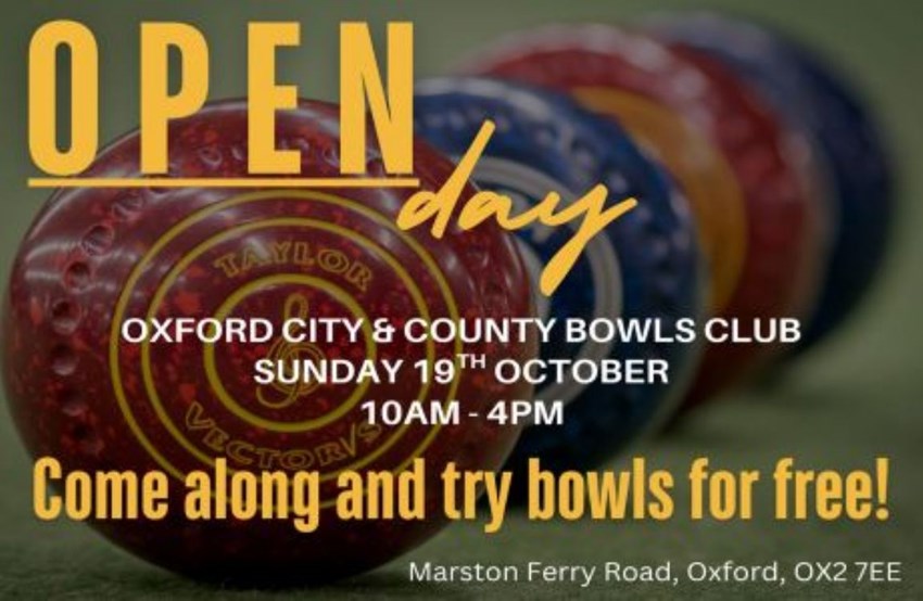 Free Bowls Open Day in Oxford. Sunday 19th October 2025 10am - 4pm.