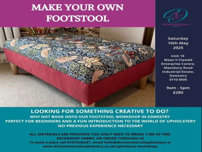 Book your place today by visiting www.divinematerialsupholstery.co.uk/upholstery-workshops/ or call 07973336447