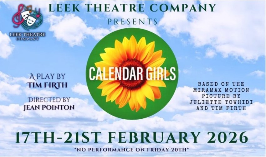 Based on the true story and hit film, the show follows a group of Yorkshire women who dare to pose for a cheeky calendar to raise money for charity, celebrating friendship, courage and community along the way. Alongside the production, the company will also be selling their own Calendar Girls 2026 calendar, with proceeds supporting the University Hospital North Midlands Cancer Unit and Macmillan Nurses. Tickets are £14 and are available from E. Grainger’s in Leek or online at www.leektheatrecompany.co.uk . Don’t miss this feel-good, uplifting night of theatre in support of two fantastic local causes! 🌻