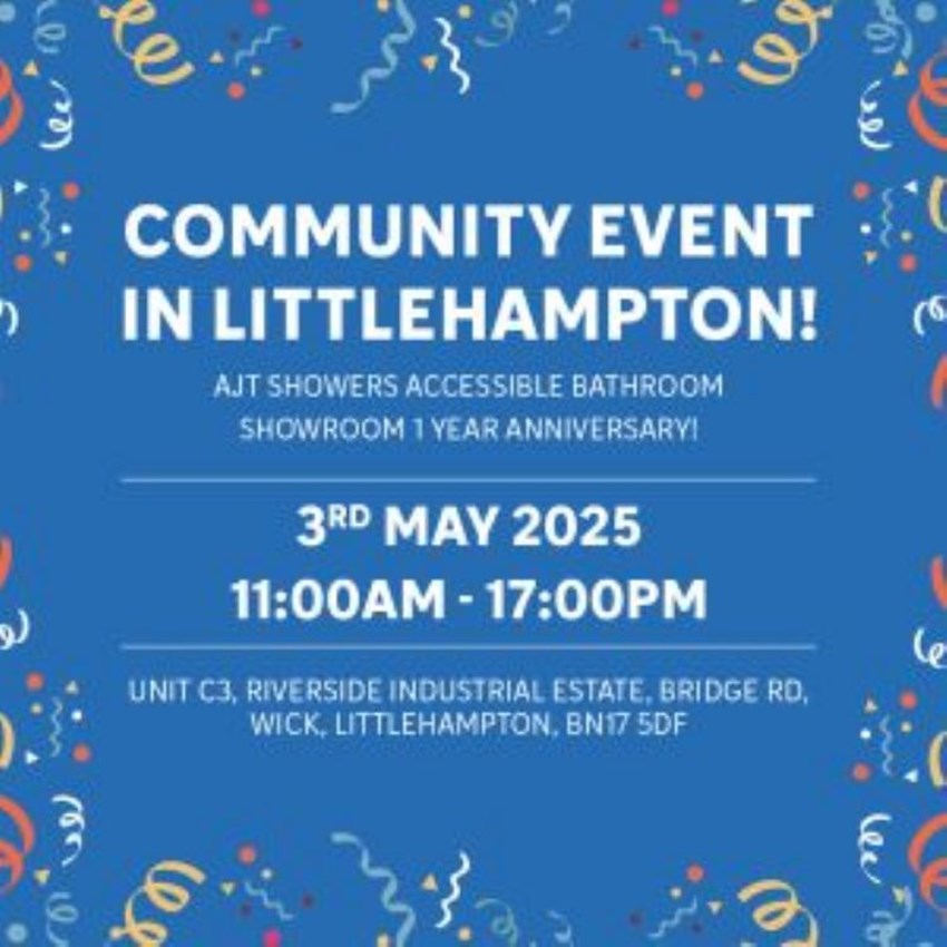 Date: 3rd May 2025 Time: 11:00am - 17:00pm Location: AJT Shower Mobility Showroom, Unit C3, Riverside Industrial Estate, Bridge Road, Wick, Littlehampton BN17 5DF