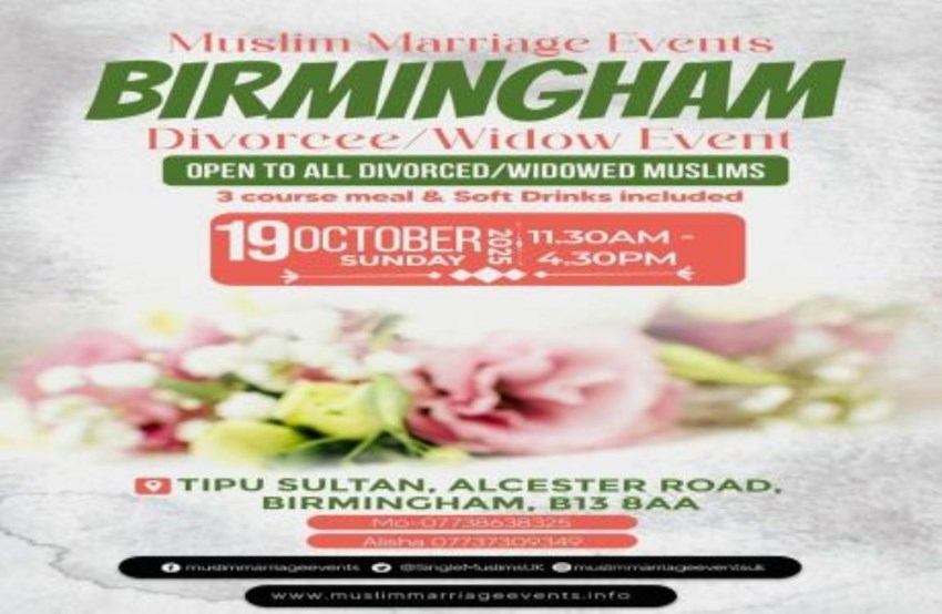 We are holding the next muslim marriage event on Sunday 19th October 2025 at Tipu Sultan, 43 Alcester Road, Moseley, Birmingham, B13 8AA.
