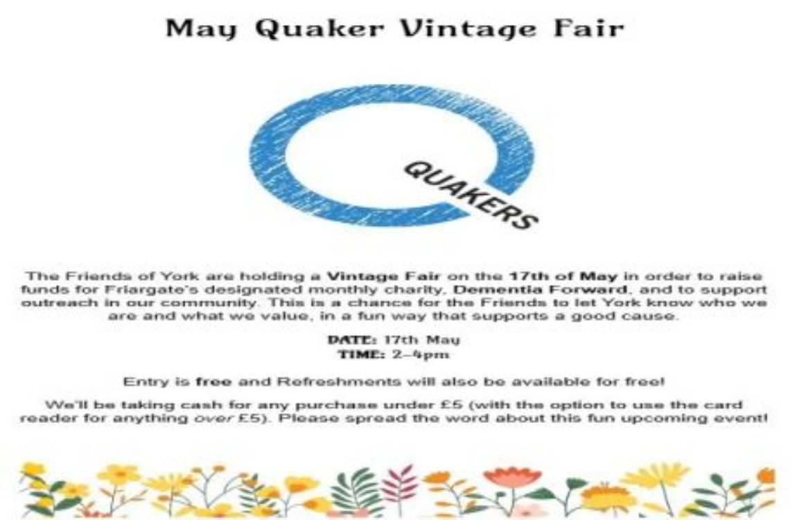 .The Friends of York are holding Vintage Fair on the 17th of May in order to raise funds for Friargates designated monthly charity Dementia Forward and to support outreach in our community. This is a chance for the Friends to let York…